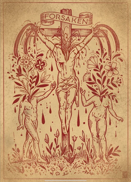 Official apparel design for the Swedish band Ghost. My inspiration comes from Sandro Botticelli’s painting *The Birth of Venus*. Venus, often referred to as the Morningstar, symbolically shares the same title as Lucifer, also known as Satan. It felt perfectly fitting for Papa Emeritus IV to emerge from the fiery sea on a leviathan, accompanied by his ghouls. Completed on March 20, 2023, and published in September 2023.